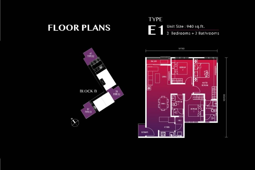 Seapark PJ Condominium offered 2 rooms and 3 rooms units. There are 4 layout types: Type B (660 sqft), Type C (860 sqft), Type D (920 sqft) ,and Type E (940 sqft). Type B comes with 2 rooms and the others with 3 rooms. Each units come with 2 to 3 carparks.